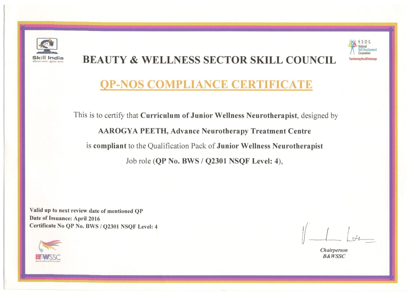 QP-NOS Compliance Certificate for Junior Wellness Neurotherapist